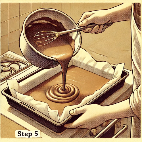 반죽을 유산지를 깐 틀에 쫘악~ 부어요.